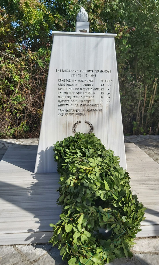 Ήταν 25η Οκτωβρίου του 1943 όταν οι αντάρτες, κάνοντας σαμποτάζ, έκοψαν οχτώ τηλεγραφόξυλα μεταξύ Καλαμιάς και γέφυρας Καλογήρου. Οι Γερμανοί δεν προσπάθησαν καν να βρουν τους υπαίτιους αλλά, έβαλαν μπροστά το σχέδιό τους για αντίποινα. Την επόμενη ημέρα, ένα απόσπασμα μπήκε στο χωριό και με την απειλή όπλων συνέλαβαν όλους τους άντρες που βρήκαν. Μαρτυρίες κάνουν λόγο για πάνω από 300 άντρες. Τους πήγαν στο καφενείο από όπου αρκετοί κατάφεραν να ξεφύγουν από τα παράθυρα.