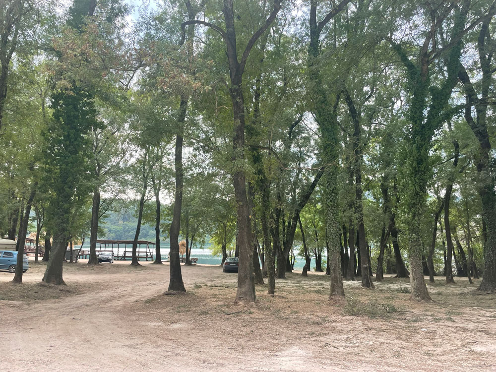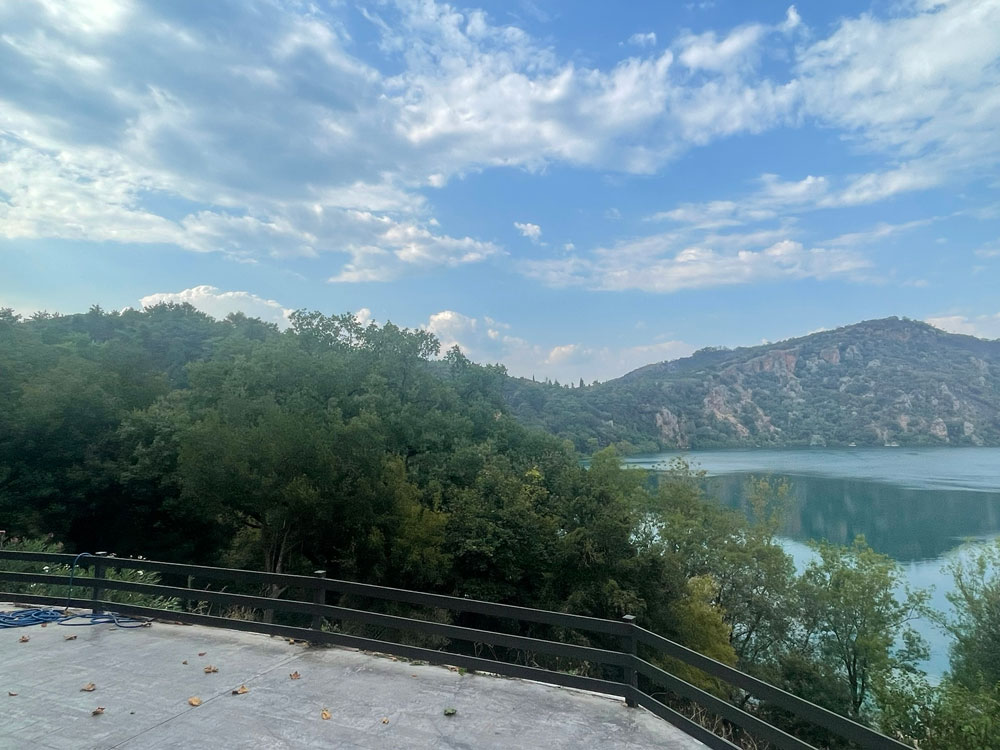 Προχωρώντας προς το εσωτερικό, η εικόνα παραμένει σχεδόν ανέπαφη. Φτάνοντας στην καφετέρια με θέα τη Λίμνη, γίνεται όμως εμφανές ότι η φωτιά άγγιξε την απέναντι πλευρά, στην περιοχή ανάμεσα στη Φιλιππιάδα και τη Λίμνη Ζηρού, εκεί που βρίσκεται η Παιδούπολη Ζηρού. Σ’ αυτό το σημείο τα καμένα ξεχωρίζουν, με το μαύρο να σπάει απότομα το πράσινο της φύσης.
