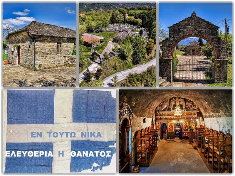 «Ορκίζομαι εις το Ιερόν Ευαγγέλιον, εις την Αγίαν Τριάδα και τον Εσταυρωμένον, ότι λαμβάνων εις χείρας τα όπλα δεν θέλω καταθέσει αυτά, ειμή αφού αποδιώξω τους τυράννους μου Οσμανλίδας από την γήν των πατέρων μου αποκαθιστών ελευθέραν την πατρίδα μου. Ορκίζομαι προσέτι εις τον ύψιστον ότι θέλω υπερασπίζεσθαι την σημαίαν και τους συντρόφους μου, χύνων αν η χρεία το καλέσει και την τελευταίαν σταλαματιάν του αίματός μου υπέρ αυτών».