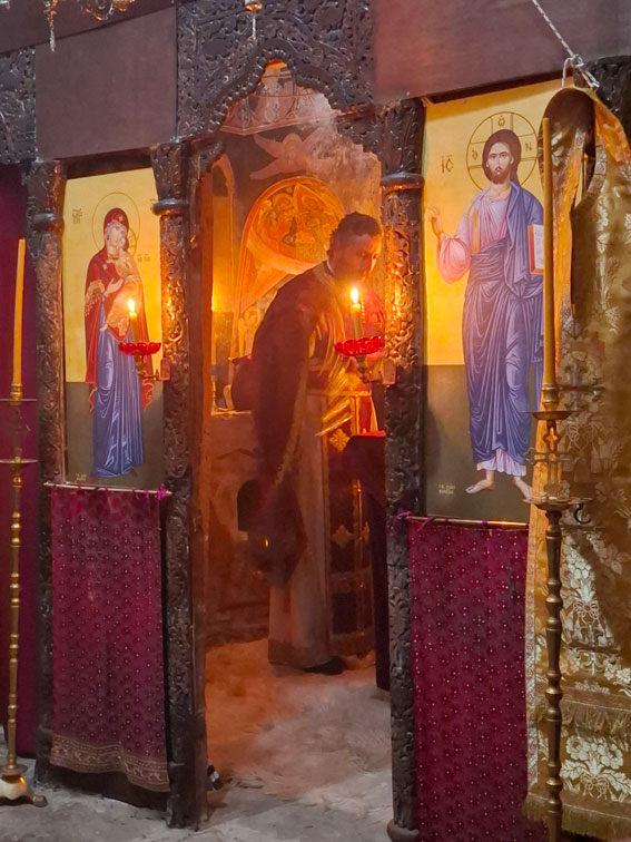 Την κατανυκτική αυτή λειτουργία την τέλεσε ο ιεροκήρυκας της Μητροπόλεως Αιτωλίας και Ακαρνανίας Αρχιμανδρίτης Νικηφόρος Ζήσης ενώ ο γέροντας της μονής αρχιμανδρίτης Ζαχαρίας διακόνησε το δεξιό αναλόγιο.