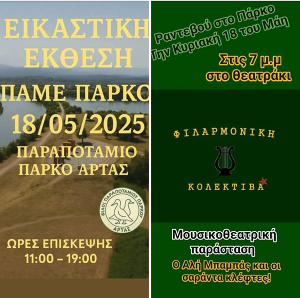 - Εικαστική Έκθεση από τις 11 το πρωί έως τις 7 το απόγευμα και αμέσως μετά θα αρχίσει η μουσικοθεατρική παράσταση με την υπέροχη Φιλαρμονική Κολεκτίβα, που θα παρουσιάσει το έργο: Ο Αλή Μπαμπάς και οι σαράντα κλέφτες!