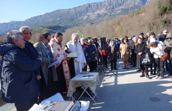 Εφέτος είμαστε όλοι μας περισσότερο χαρούμενοι διότι ολοκληρώθηκε σχεδόν η αναστήλωση του Γεφυριού της Πλάκας που είναι για μας η Ακρόπολη των Τζουμέρκων!! Πριν από μία ώρα έγινε και εκεί ο αγιασμός των υδάτων και τον Μάιο θα μπορούμε να περνάμε από πάνω της».