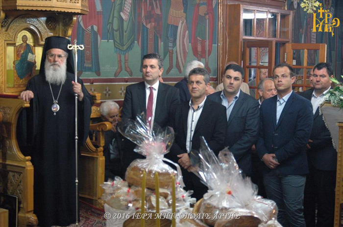 Την περασμένη Πέμπτη το βράδυ πραγματοποιήθηκε μέγας εσπερινός μετ’ αρτοκλασίας, χοροστατούντος του σεβασμιότατου μητροπολίτη Άρτας κ.κ. Ιγνατίου και συλλειτουργούντων του αρχιερατικού επιτρόπου της Μητροπόλεως κ. Κωνσταντίνου Πλακιά, του ιερουργού του Αγίου Νικολάου πάτερ Γεωργίου Σκαμπαρδώνη, του καταγόμενου εκ Λιμίνης πατήρ Ευάγγελου Τράμπα, συνεργάτη, πρωτεργάτη και βοηθό όλης της εκδήλωσης και άλλων πνευματικών πατέρων.