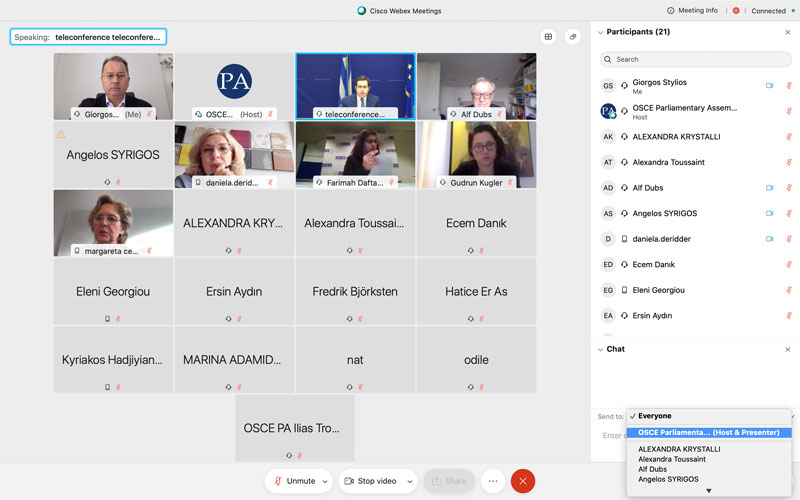 Σε τηλεδιάσκεψη της Επιτροπής Μετανάστευσης της Κοινοβουλευτικής Συνέλευσης (Κ.Σ.) του Οργανισμού για την Ασφάλεια και τη Συνεργασία στην Ευρώπη (Ο.Α.Σ.Ε.) συμμετείχε ο Γιώργος Στύλιος. Στη διάσκεψη, μεταξύ άλλων συμμετείχαν ο Υπουργός Μετανάστευσης και Ασύλου κ. Νότης Μηταράκης και η Αντιπρόεδρος της Κ.Σ. του Ο.Α.Σ.Ε. κα. Μαργαρίτα Σέντερφελτ (Margareta Cederfelt).