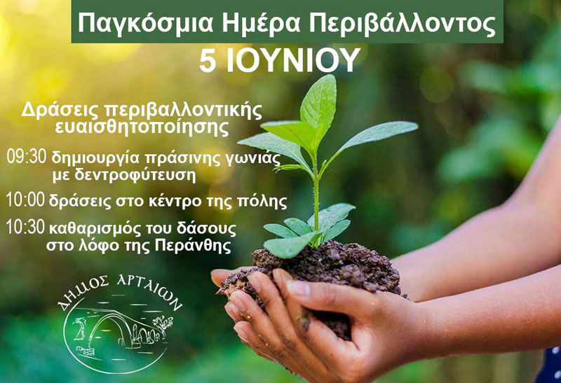 Ο Δήμος Αρταίων, ο Σύλλογος Δρομέων Άρτας, ο Ορειβατικός Σύλλογος Άρτας, και το Σώμα Προσκόπων Ελλάδας (Παράρτημα Άρτας), προχωρούν σε μία κοινή συνέργεια για τον εθελοντικό καθαρισμό του δάσους στο λόφο της Περάνθης, αύριο Σάββατο 5 Ιουνίου, Παγκόσμια Ημέρα Περιβάλλοντος, στις 10:30 το πρωί.