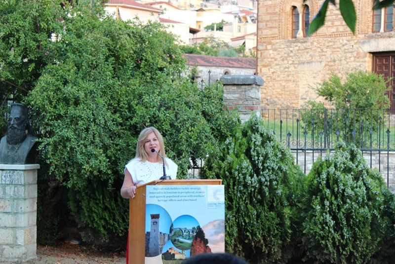 Ακολούθησε η εισήγηση της Κατερίνας Σχισμένου, Φιλολόγου- ερευνήτριας με θέμα «Τρόποι αύξησης των επιπέδων σημαντικότητας της πολιτιστικής κληρονομιάς της περιοχής της Άρτας». Στην εισήγησή της τόνισε την αναγκαιότητα να δημιουργηθεί μια ατζέντα σημαντικότητας των μνημείων της περιοχής προκειμένου να ενταχθούν στον κατάλογο παγκόσμιας κληρονομιάς της UNESCO. Ένα μνημείο αποτελεί «κοινό αγαθό» και είναι δημόσιο. Αποτελεί μέρος της καθημερινότητας ενός πολίτη και πρέπει με κάποιο τρόπο να ενταχθεί στην συγκινησιακή του και βιωματική του σφαίρα προκειμένου να γίνει και βαθύτερο κτήμα του και να μετατραπεί σε αξία, αισθητική και πολιτισμική. Επίσης αναφέρθηκε στην αναγκαιότητα της εμπλοκής της κάθε μορφής εκπαίδευσης για τις νέες γενιές ώστε να κατανοήσουν τον τόπο που ζουν και την ιστορική του συνέχεια.
