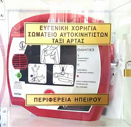 Παρουσία του Δημήτρη Βαρέλη, της Αναστασίας Σίμου Τάσιου και του Ντίνου Παπαδημητρίου εκπροσώπων της Περιφέρειας Ηπείρου, του Προέδρου του Συλλόγου Αυτοκινητιστών Ταξί Άρτας και εκπροσώπων τους, του Δημάρχου μας, Αντιδημάρχων, του Προέδρου Δημοτικού Συμβουλίου και μελών του Δημοτικού Συμβουλίου, Προέδρων Τοπικών Κοινοτήτων, Γιατρών και νοσηλευτικού προσωπικού του Κέντρου Υγείας, όλων των εργαζομένων του προγράμματος "Βοήθεια στο σπίτι" αλλά και δημοτών μας τοποθετήθηκε σήμερα στην Άνω Καλεντίνη στο Κέντρο Υγείας αυτόματος εξωτερικός απινιδωτής χορηγία του Σωματείου Αυτοκινητιστών ΤΑΞΙ Άρτας!