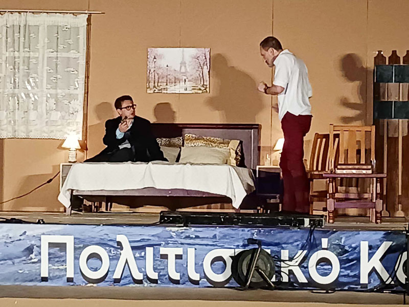 Εμείς συναντήσαμε τους ηθοποιούς πριν την παράσταση, κατά την επίσκεψή τους στο Ιστορικό Γεφύρι της Άρτας και είχαμε μαζί τους μια πολύ ενδιαφέρουσα ποιοτική συζήτηση για θέματα που αφορούν τους ιδίους αλλά και τον καλλιτεχνικό χώρο γενικότερα. Αναφερόμενος στην παράσταση, ο παραγωγός, σκηνοθέτης και πρωταγωνιστής Σταύρος Νικολαΐδης μας δήλωσε “Είναι μια ωραία κωμωδία, όπου κατά κοινή ομολογία μας λένε όλοι ότι σε κάποια στιγμή έχουν δει κάποια φάση της ζωής τους. Είναι πέντε άνθρωποι που μπλέκονται, μέσα από την αιώνια διαμάχη των δύο φύλων, σε ένα γαϊτανάκι ανατροπών με κάποια αστυνομική χροιά, με μια χειριστική γυναίκα που παίζει τους άντρες σαν κομπολόι και δυο άντρες που προσπαθούν να απεγκλωβιστούν από τα δίχτυα της”.