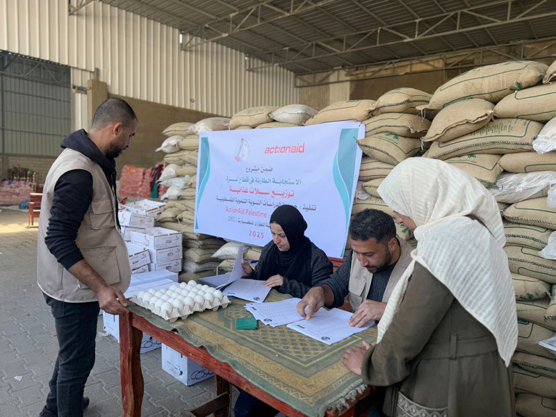 Η ActionAid βρίσκεται και η ίδια στο πεδίο, αλλά συνεργάζεται και με τοπικούς εταίρους και προσφέρει, όταν αυτό είναι εφικτό, είδη ατομικής υγιεινής, είδη στέγασης, τρόφιμα, νερά και γενικά είδη σίτισης, αλλά και ψυχοκοινωνική βοήθεια σε πληγέντες και πληγείσες στη Γάζα. Παράλληλα, δημιουργεί σε Γάζα και Δυτική Όχθη κοινοτικούς φούρνους, προσφέρει υπηρεσίες σεξουαλικής και αναπαραγωγικής υγείας, ενώ παρέχει και οικονομική ενίσχυση για κάλυψη βασικών αναγκών. Μέσα στους 4 πρώτους μήνες του 2025, η ActionAid είχε υποστηρίξει 22.982 άτομα, ενώ το 2024 ο αντίστοιχος αριθμός ξεπέρασε τις 379.000.