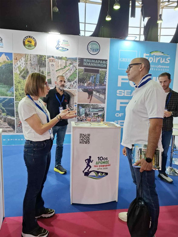 Στο πλαίσιο της παρουσίας του, ο Δήμος Αρταίων με επικεφαλής τον Αντιδήμαρχο Αθλητισμού και Παιδείας κ. Χρήστο Γιώτη, ενημερώνει το κοινό για τη μεγάλη δρομική γιορτή της Άρτας, τον Ημιμαραθώνιο «Δρόμος του Γιοφυριού», προβάλλοντας παράλληλα το αθλητικό πνεύμα, τον πολιτισμό και τη φυσική ομορφιά της Άρτας.