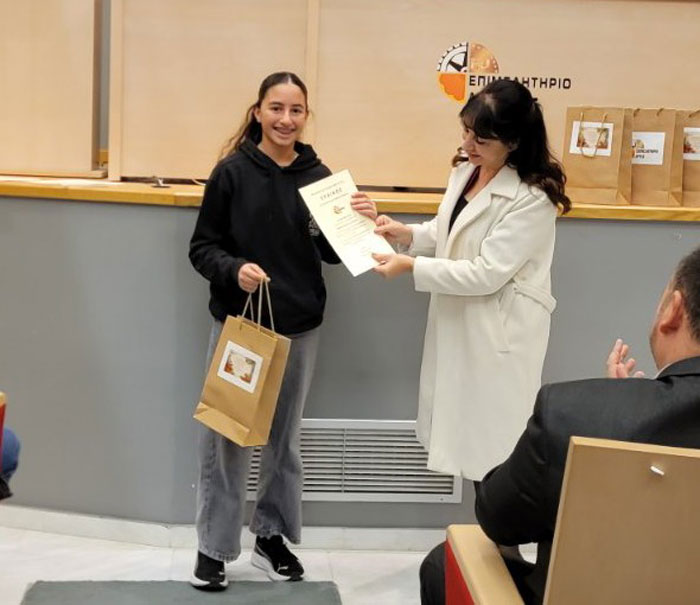 Τέλος, μία εκ των βραβευθέντων, η Ανδριάνα Γεωργίου, έστειλε το δικό της μήνυμα παίρνοντας το λόγο στην εκδήλωση, αναφερόμενη στους αγώνες των επιχειρηματιών για τα παιδιά τους «Με αυτόν τον λόγο θέλω να αποδώσω έναν φόρο τιμής στους δικούς μου γονείς που πάλεψαν για να είμαι εγώ εδώ σήμερα, για να περάσω στη σχολή που ήθελα και να κάνω τα όνειρά μου πραγματικότητα. Είμαι εδώ σήμερα γιατί ο πατέρας μου κάθισε στην επιχείρησή του 20 ώρες το 24ωρο και έμεινε βράχος ακόμη κι όταν έξω από αυτήν γίνονταν εργασίες και το μέρος θύμιζε βομβαρδισμένο τοπίο. Είστε σήμερα εδώ και βοηθάτε τον πατέρα μου και μέσα από τον ίδιο βοηθάτε κι εμένα, αλλά και κάθε άλλον επιχειρηματία που παλεύει καθημερινά για μια καλύτερη ζωή κι ένα καλύτερο Αύριο για όλους μας! Σας ευχαριστώ πολύ!».