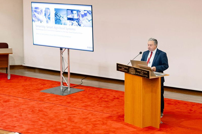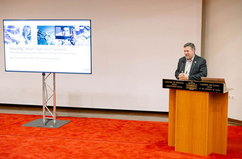 Η επίσημη εναρκτήρια εκδήλωση του συνεδρίου ξεκίνησε με την εξαιρετικά επιτυχημένη κεντρική ομιλία (keynote) του Καθηγητή JohnVerboncoeur από το Michigan State University των ΗΠΑ, με τίτλο “Smart Agrifood Systems (SmartAg): Technology Applied to the Food Supply Chain". Ο κος Verboncoeur αναφέρθηκε αναλυτικά σε θέματα Έξυπνων Συστημάτων Αγροδιατροφής και εφοδιασμού τροφίμων, τον τρόπο αντίληψης των συστατικών και της θρεπτικής αξίας των παραγόμενων τροφίμων, τις σχέσεις κόστους-ποιότητας και τις παγκόσμιες τάσεις στον τομέα της αγροδιατροφής ανά χώρα, καθώς και στη διατροφή του μέλλοντος και πώς αυτή θα διαμορφωθεί με τη χρήση έξυπνων εργαλείων, νέων τεχνικών αλλά και προϊόντων σχεδιασμένων και στοχευμένων ώστε να ανταποκριθούν στον τρόπο διαχείρισης της τροφής αλλά και της αλυσίδας εφοδιασμού τροφίμων, όπως αυτά αναμένεται να διαμορφωθούν τα επόμενα χρόνια.