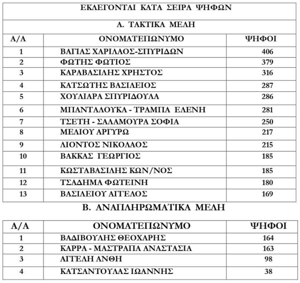 Μετά το πέρας της εκλογικής διαδικασίας για την ανάδειξη του νέου Διοικητικού Συμβουλίου του Μ/Φ Συλλόγου Άρτας «Ο ΣΚΟΥΦΑΣ», τα αποτελέσματα της σταυροδοσίας διαμορφώθηκαν ως εξής: